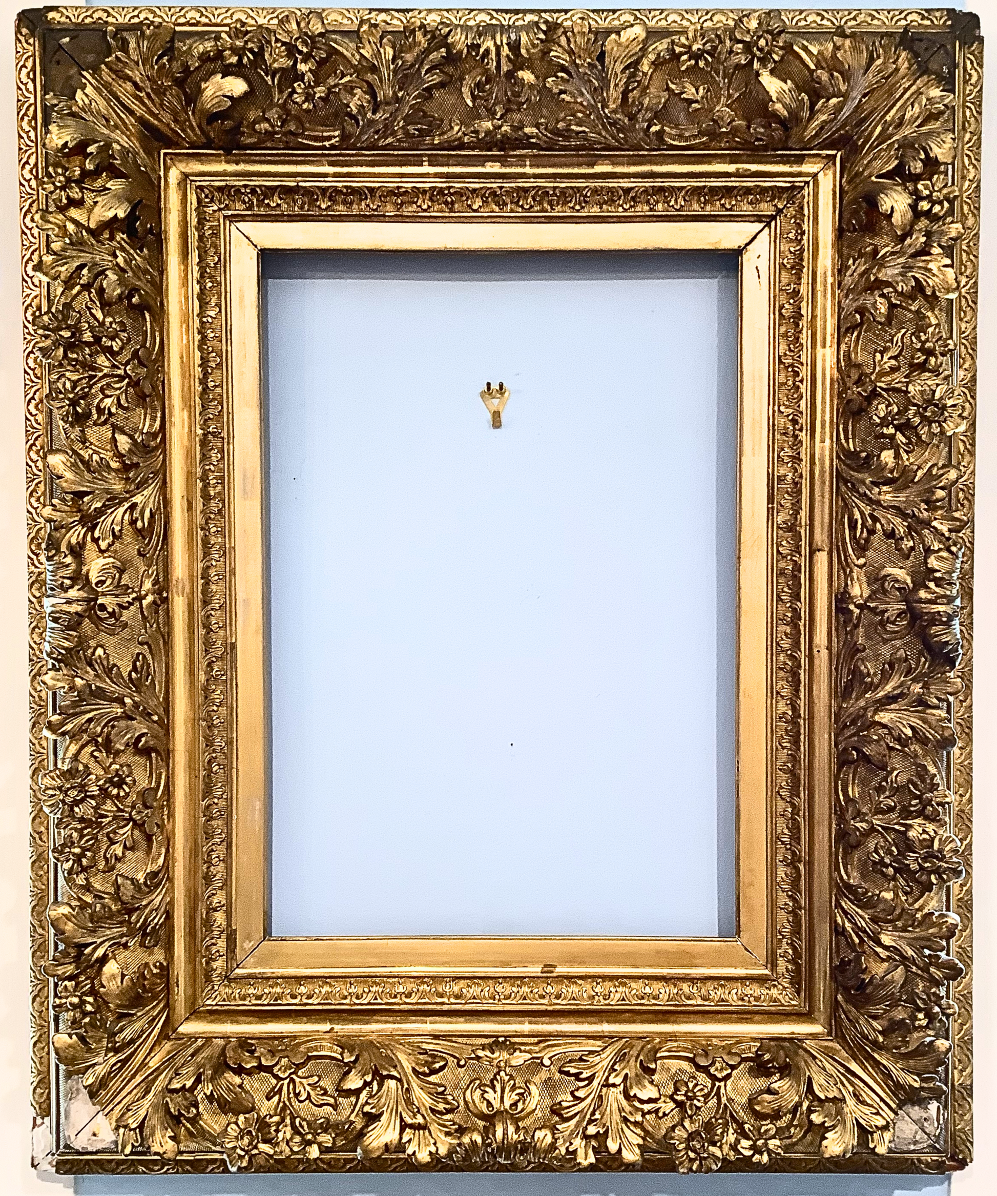 What a find! Gilt frame came from an art gallery that had a collection of antique frames that once held old masters canvases. The frames were separated from their original canvases in the 1950s and1960s, in favor of more contempered frames.