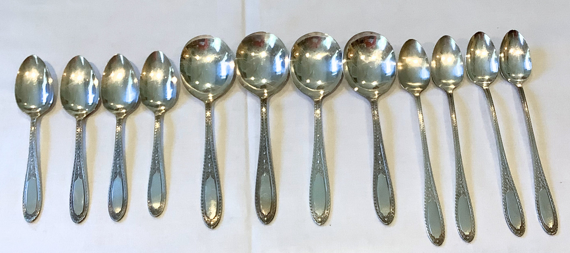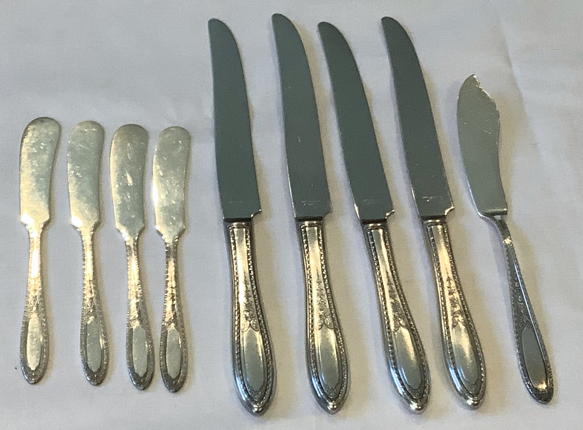 Silver plate WM. A Rogers tableware set in Ramona pattern, from 1928.