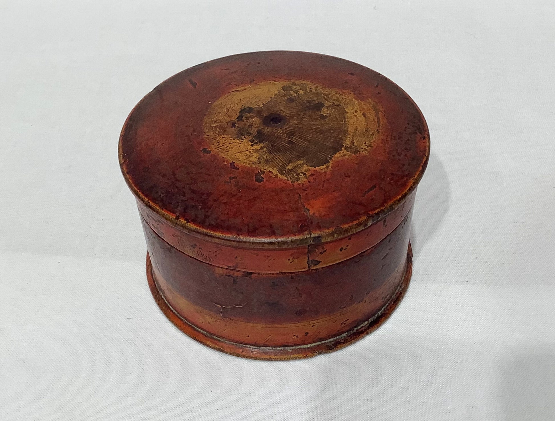 19th century, Burmese wood box in red lacquer. 2 1/2" x 3 3/4"
