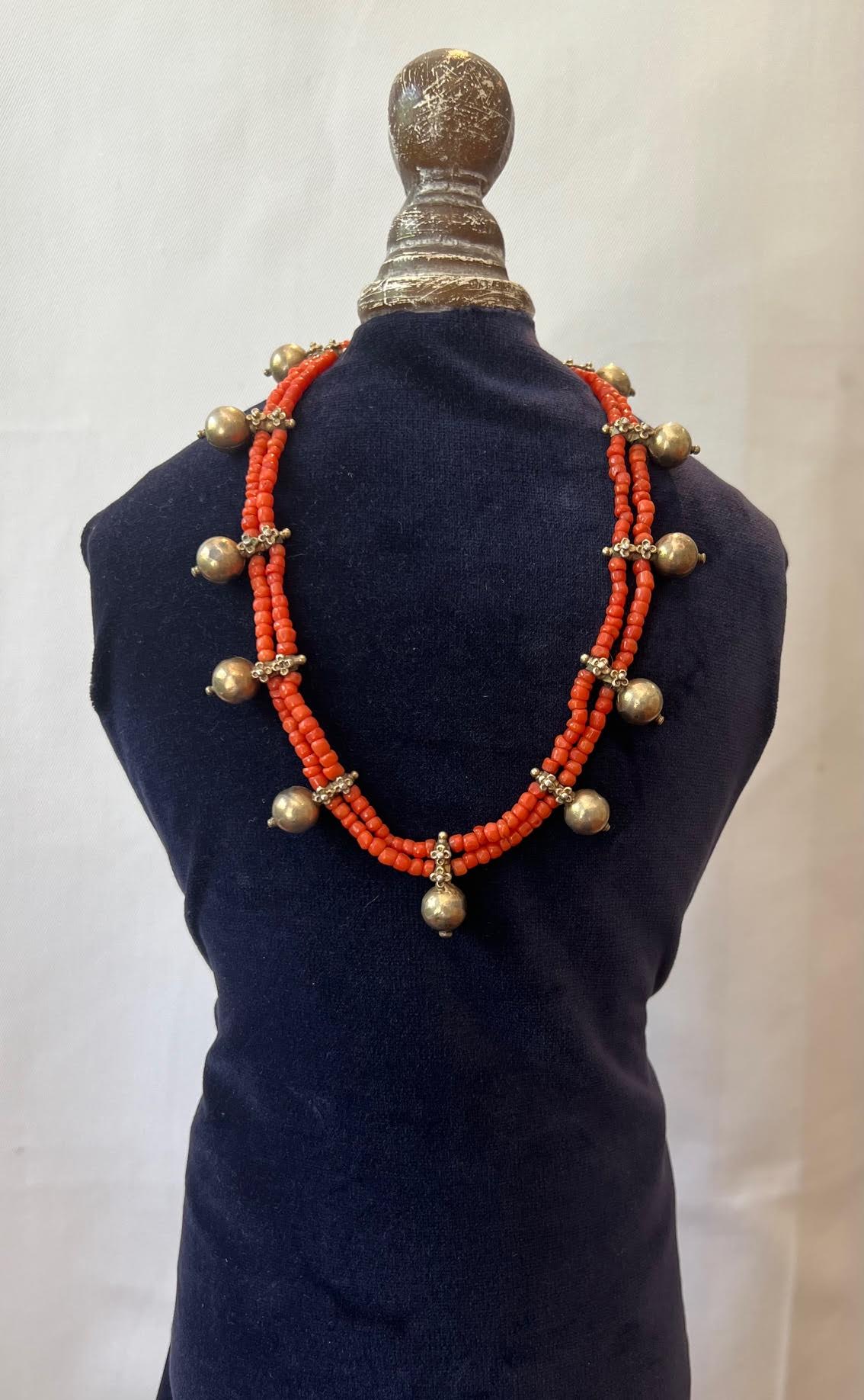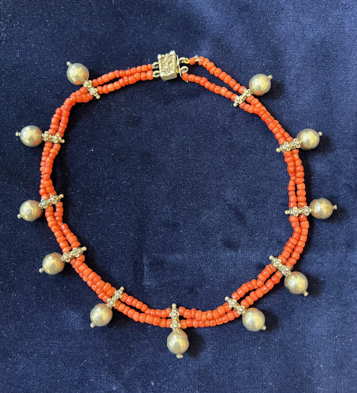 Antique coral and gold beaded choker necklace. Victorian piece in wonderful shape.