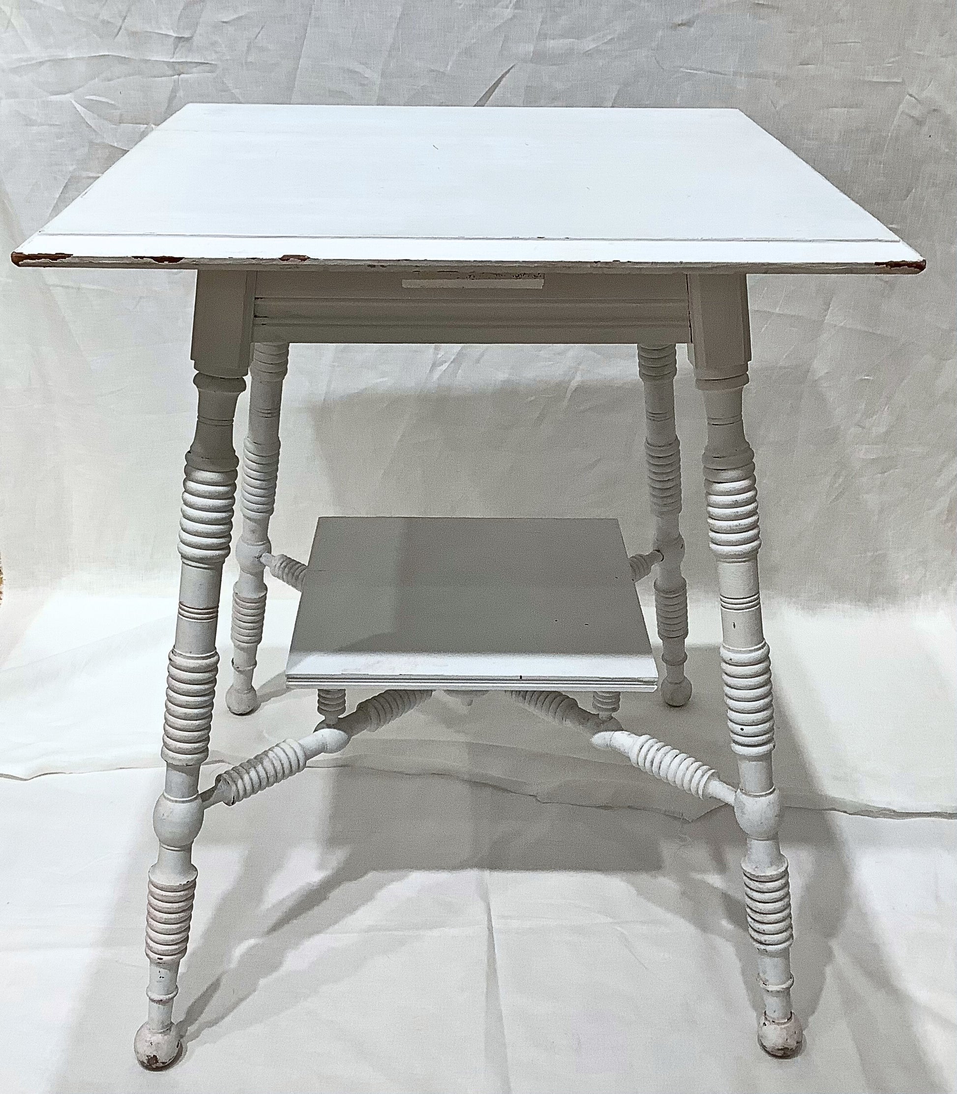 Handy Victorian cottage table perfect for multiple uses. Made from wood, with lovely turned legs.