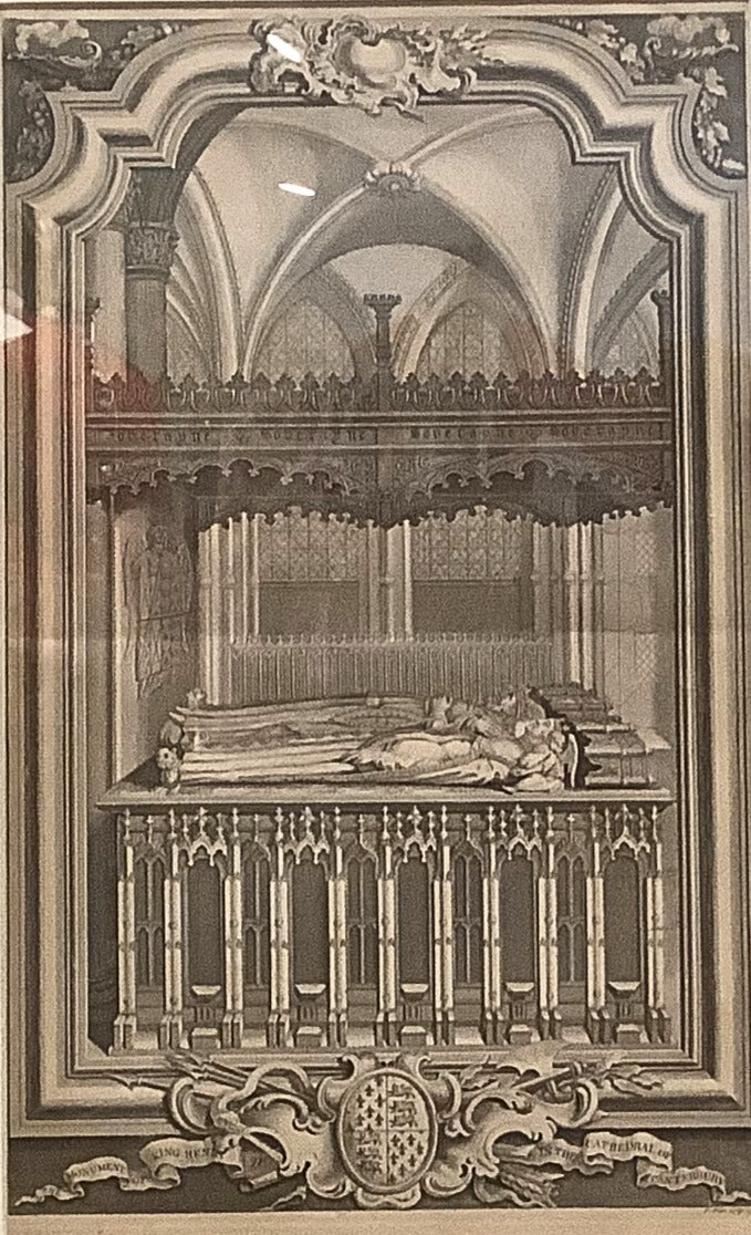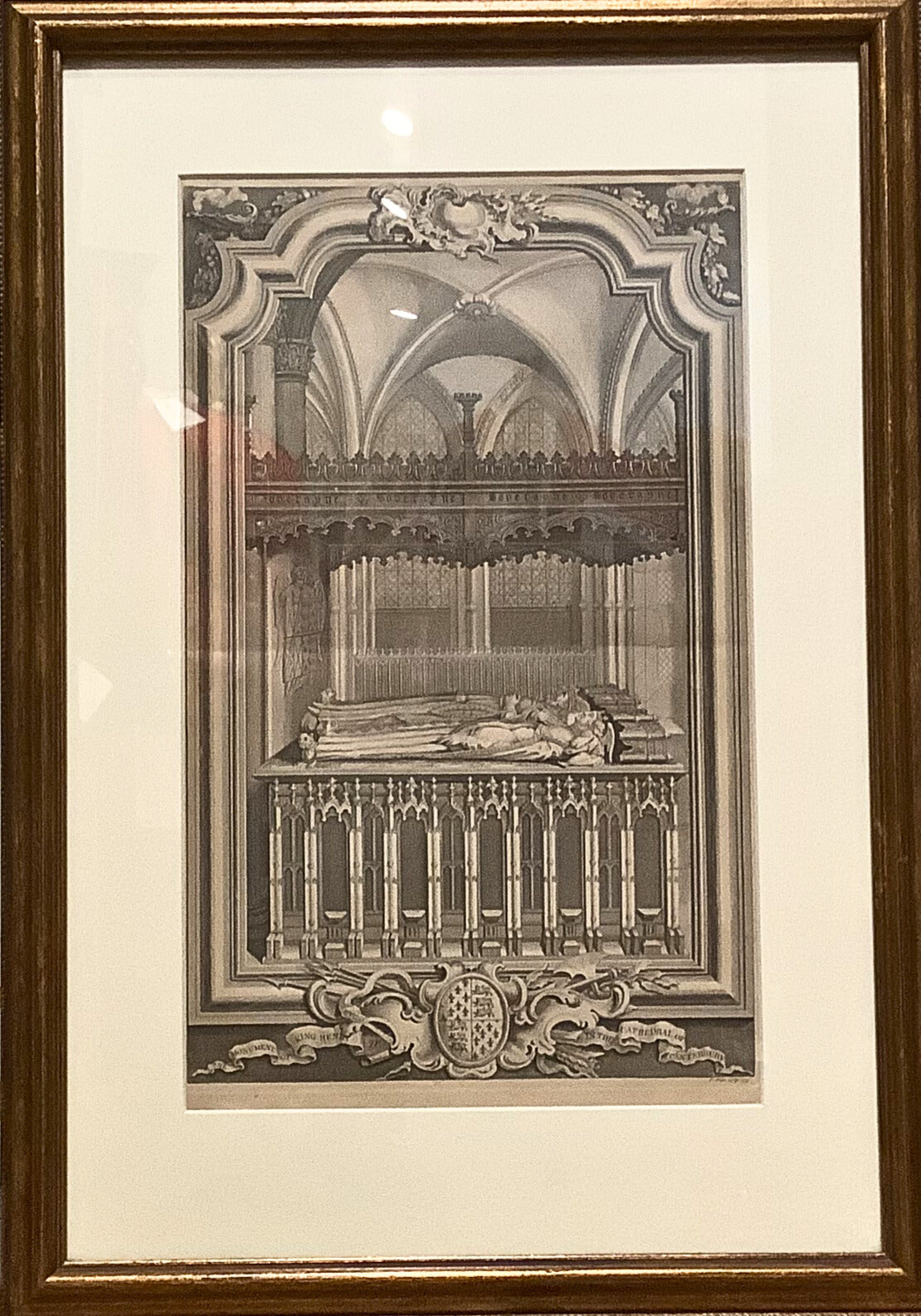 Original engraving from 1732, from Rapin de Thoyras' "History of England". Image depicts the burial site, in Westminster Abbey, of King Henry II. Engraving in good condition, and museum quality mounting and framing. Size 20 1/3" x 14 1/3".