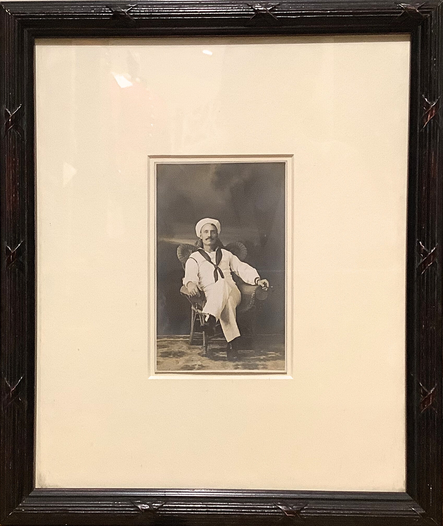At Weatherly, we love sailors, especially one's with cheeky grins. This early 20th c photograph is mounted in a beautiful antique wood frame, using museum quality matting and glass. What secrets does this sailor hold behind his enigmatic smile? Size 13" x 10.5".