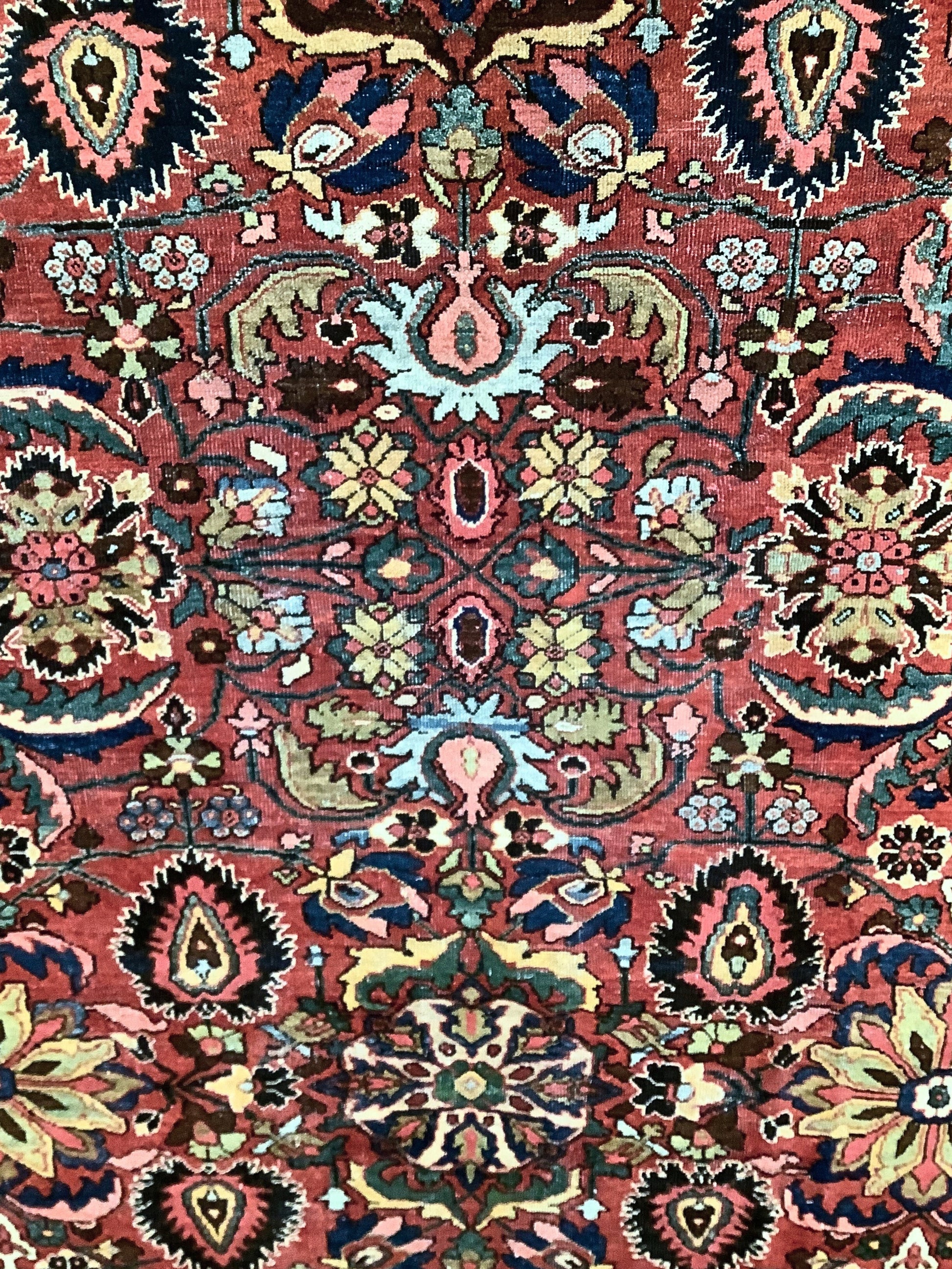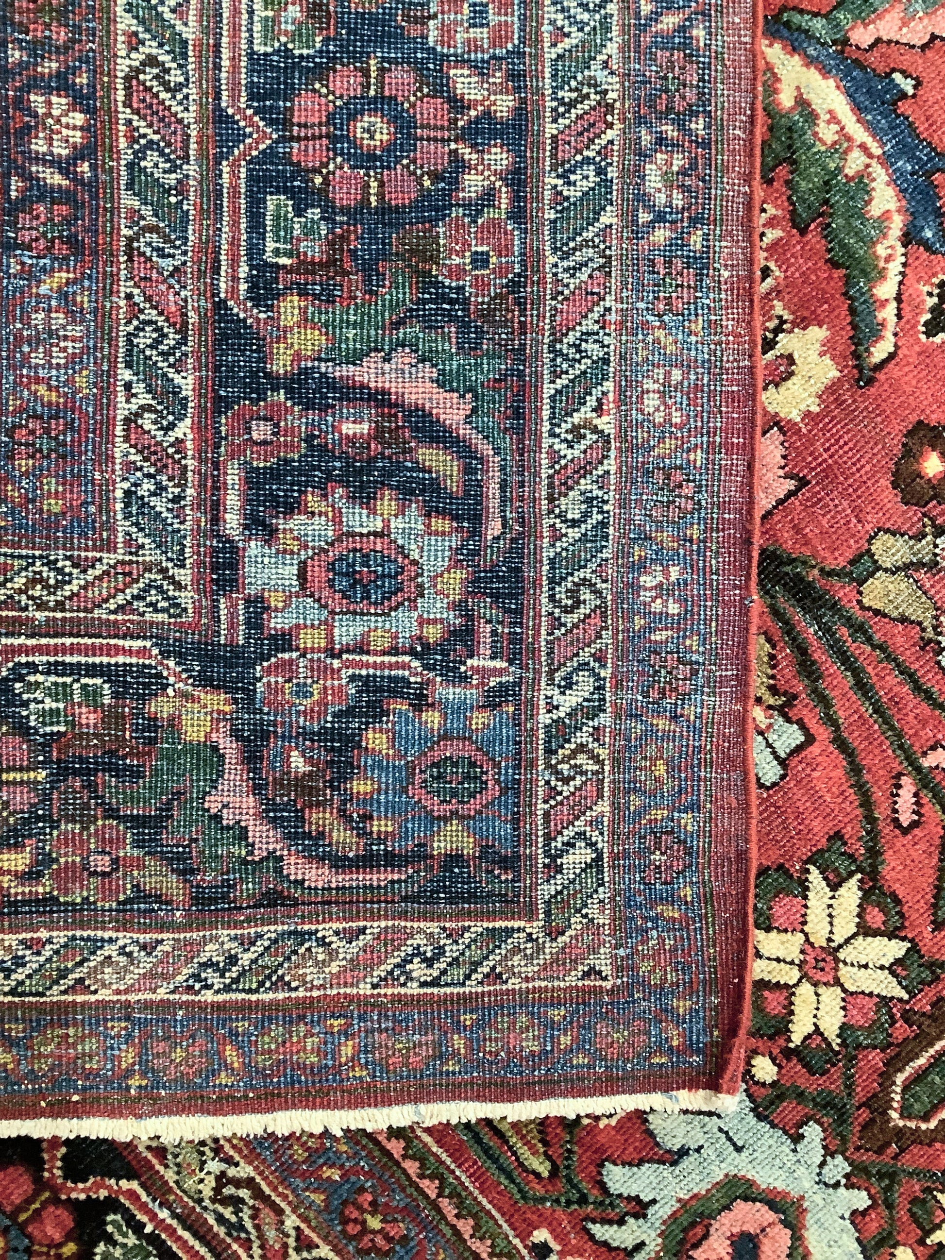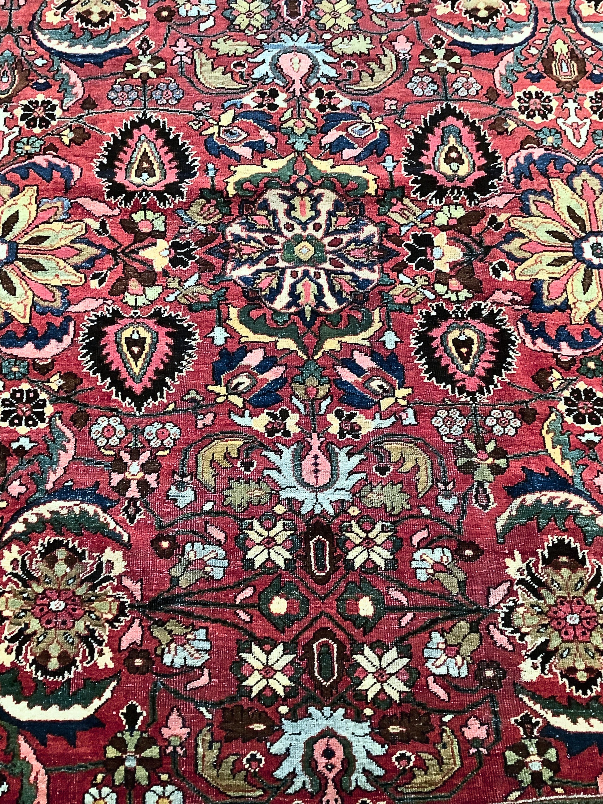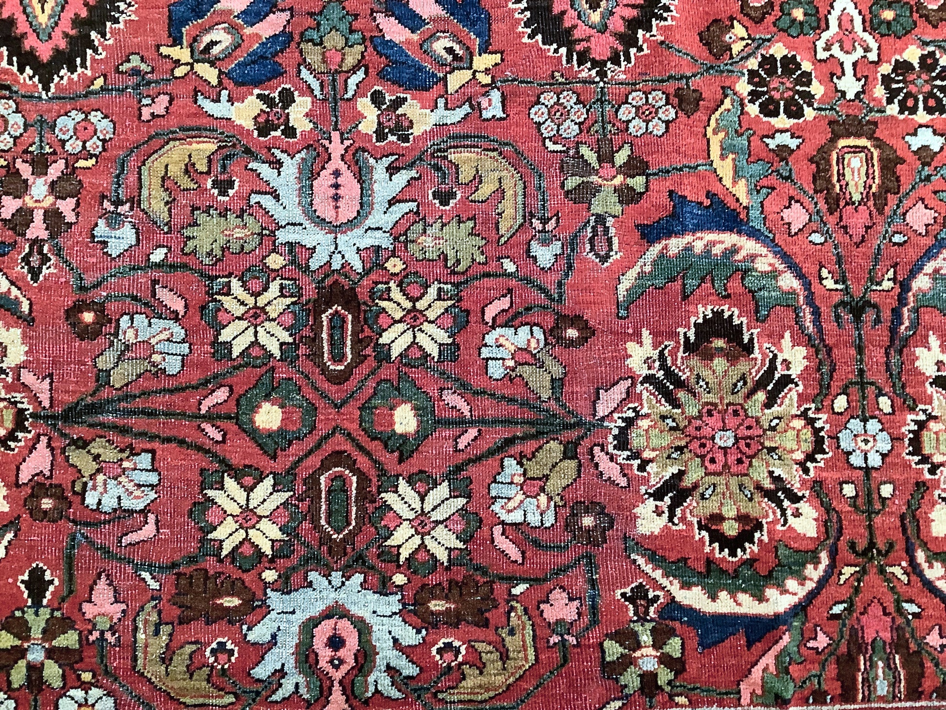 Late 19th/early 20th C Persian Mahal carpet, in magnificent condition. Handwoven, with a high knot count, this carpet has no tears, holes or fraying. The natural dyed colors are still rich and vibrant.. With it's commanding size, this carpet is a statement piece, and will add a worldly look to any room.