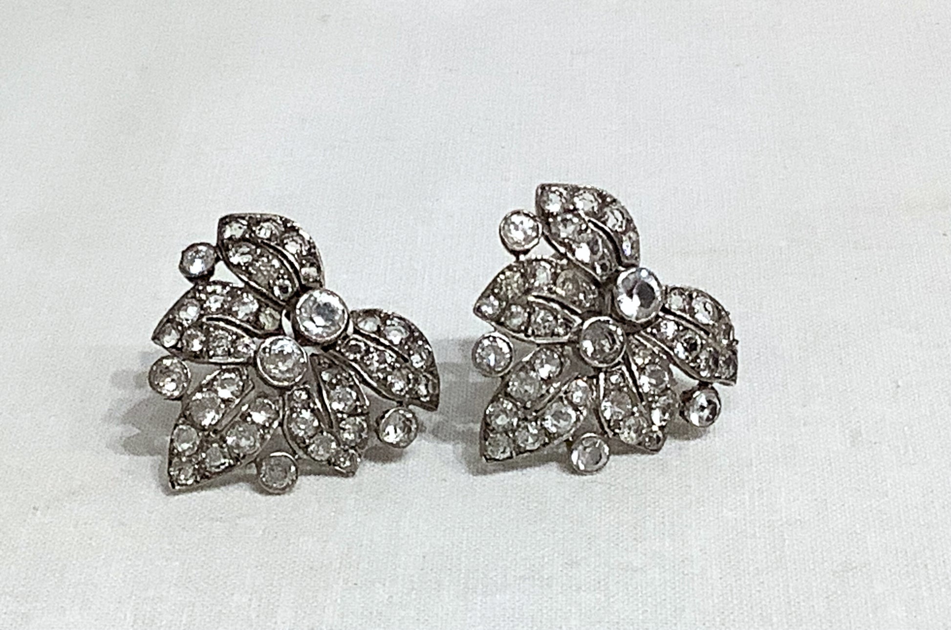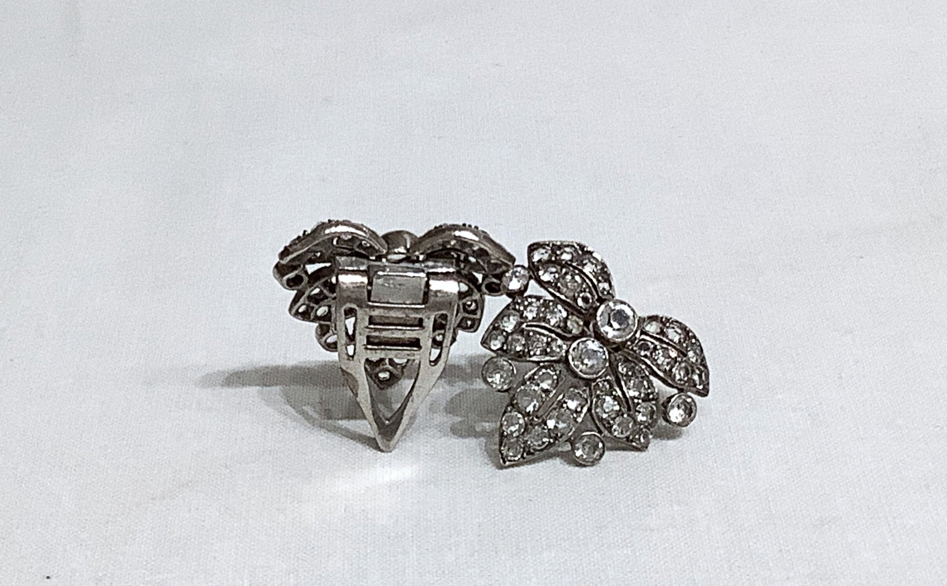 Antique Art Deco dress clips in a lovely leaf design. Paste stones in great condition. Clips would add an elegant flair to dress shirts, coats, collars or the vamp of a shoe.