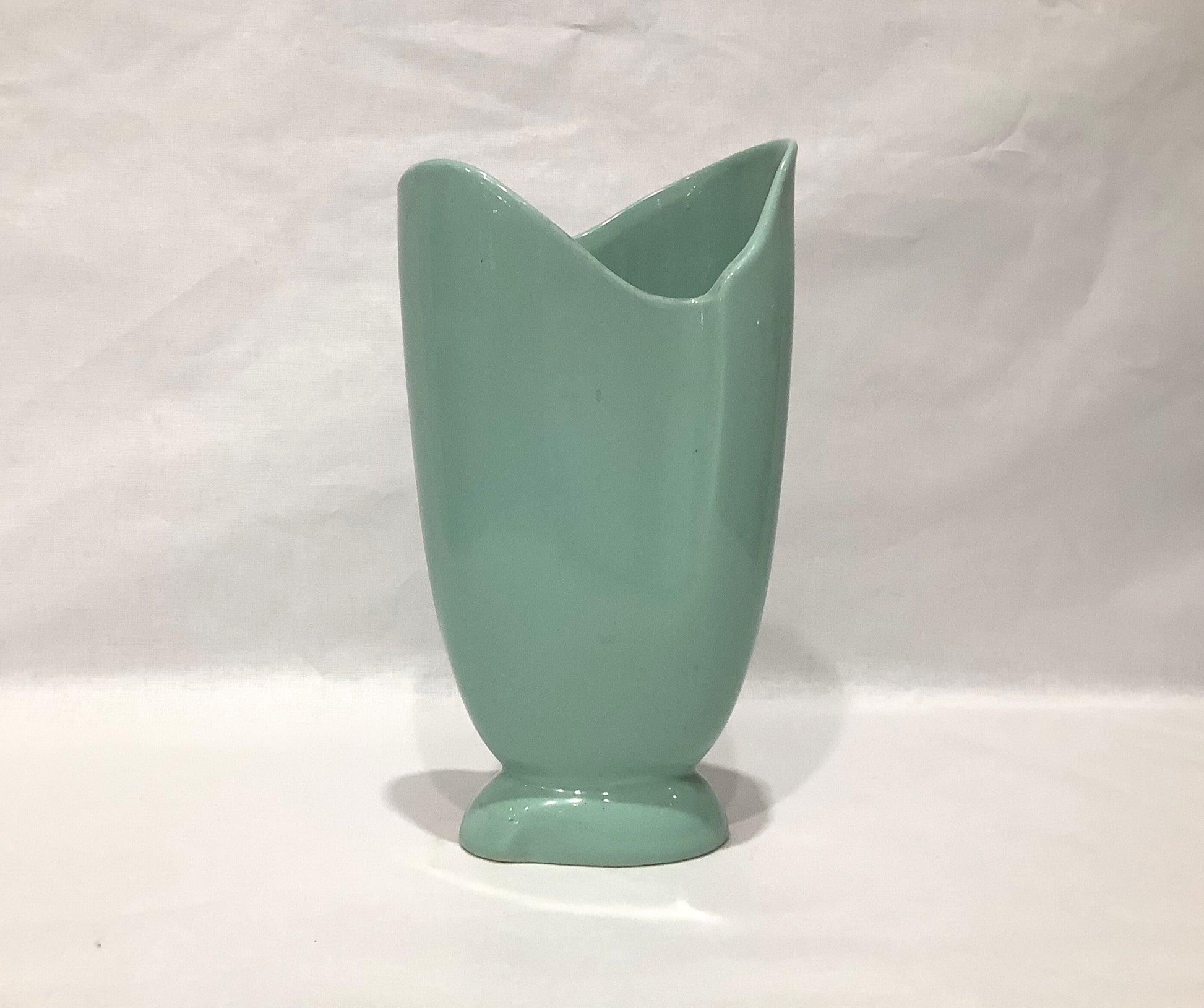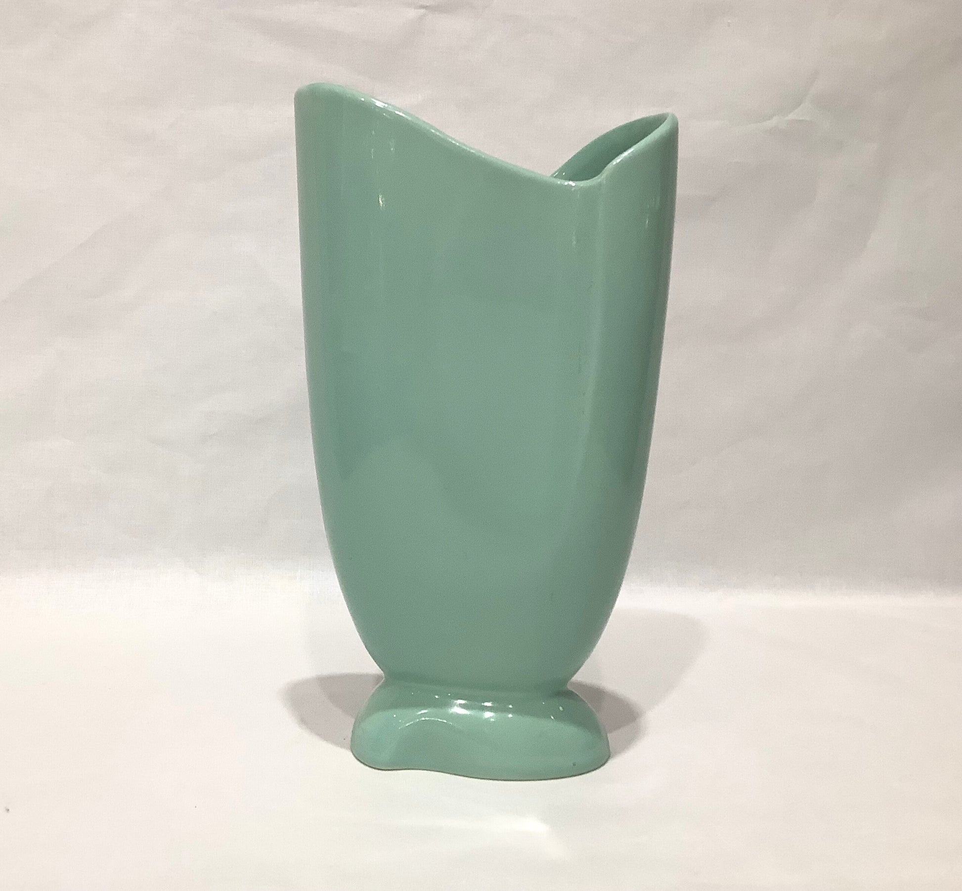 Stylish, clean, American made, late Art Deco to early Mid-Century pottery vase. Great condition! Pale green in color.