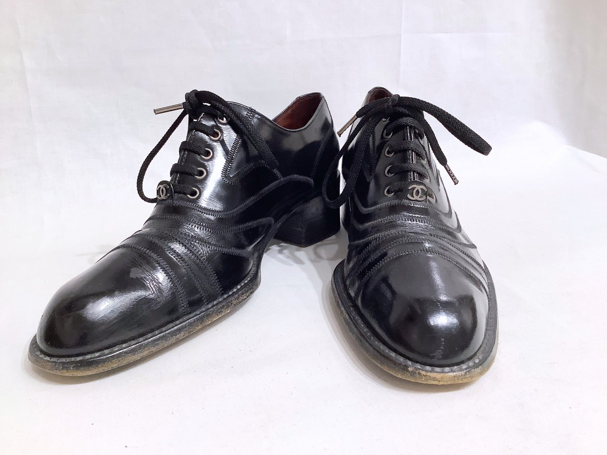 Vintage pair of women's oxford shoes from Chanel. Shoes, which were made in Italy, are in great condition. Size 7.5 (38 Euro). Notice the interlocked CCs lace holders.