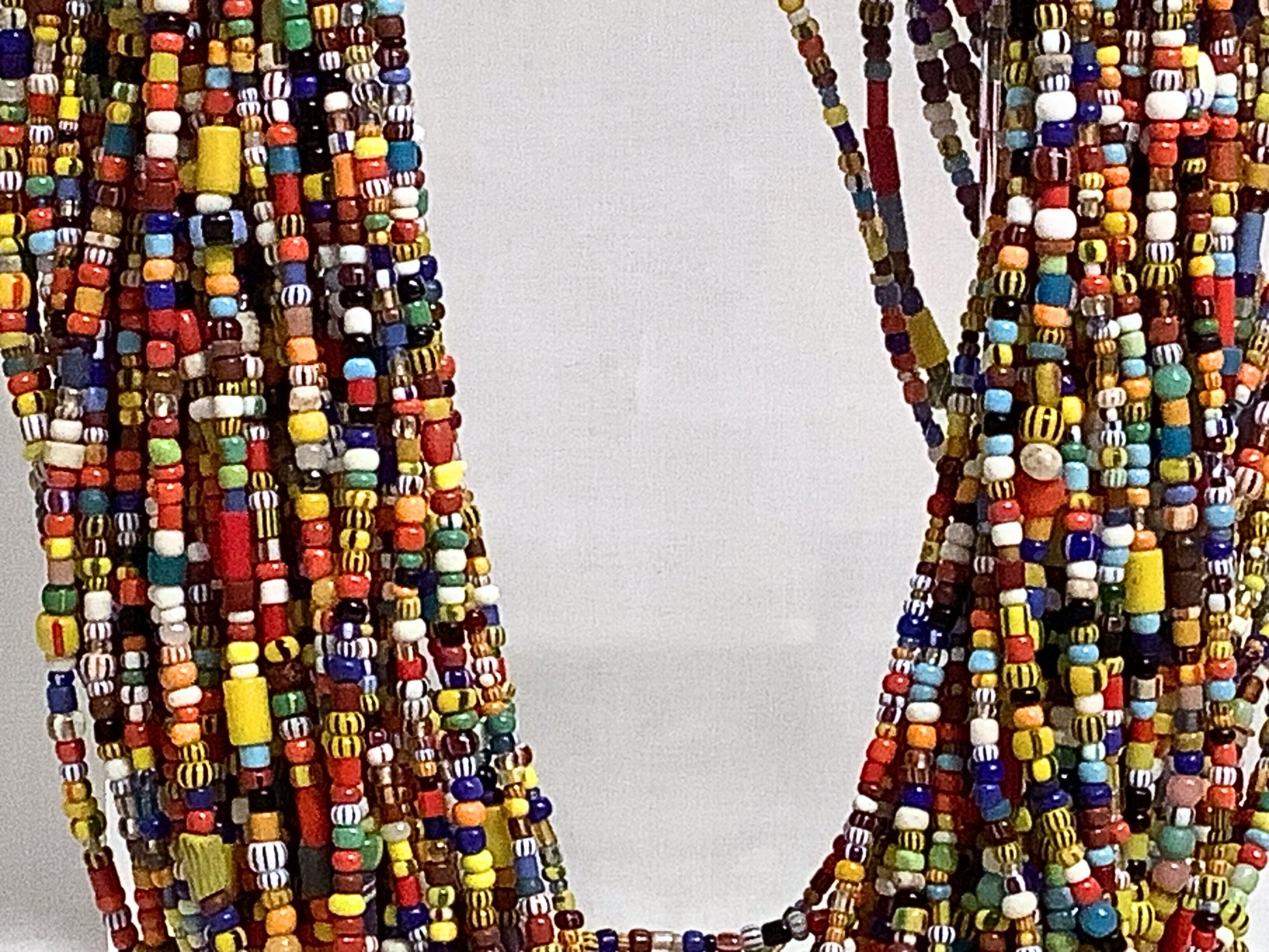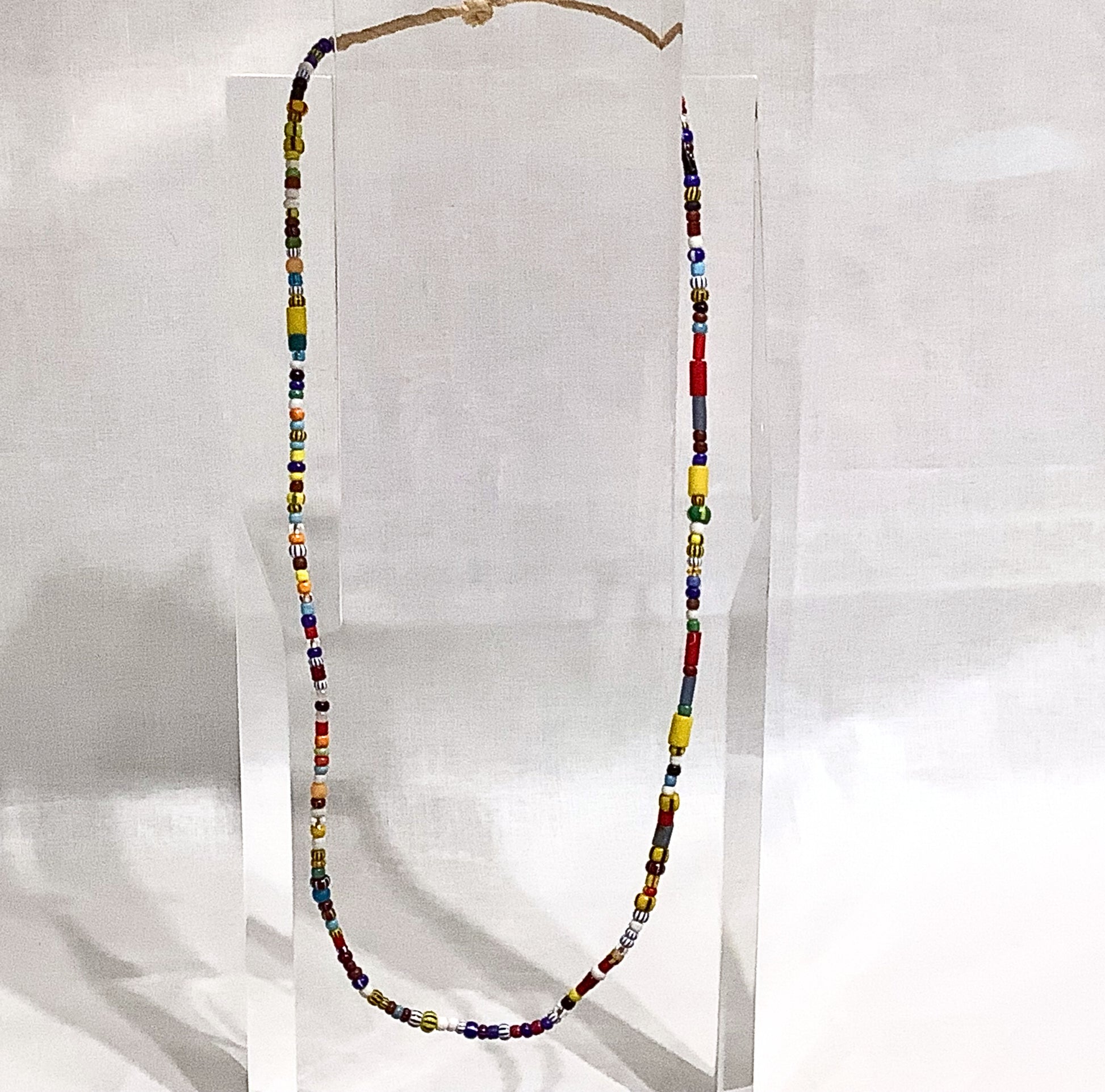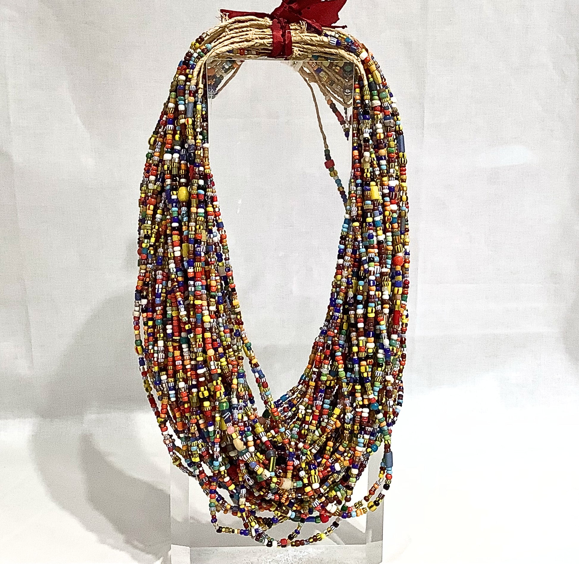 Colorful glass beaded strands from Kenya. Wear as a single strand, or in multiples. May also be used as a fun trim for pillows or other decorative items.