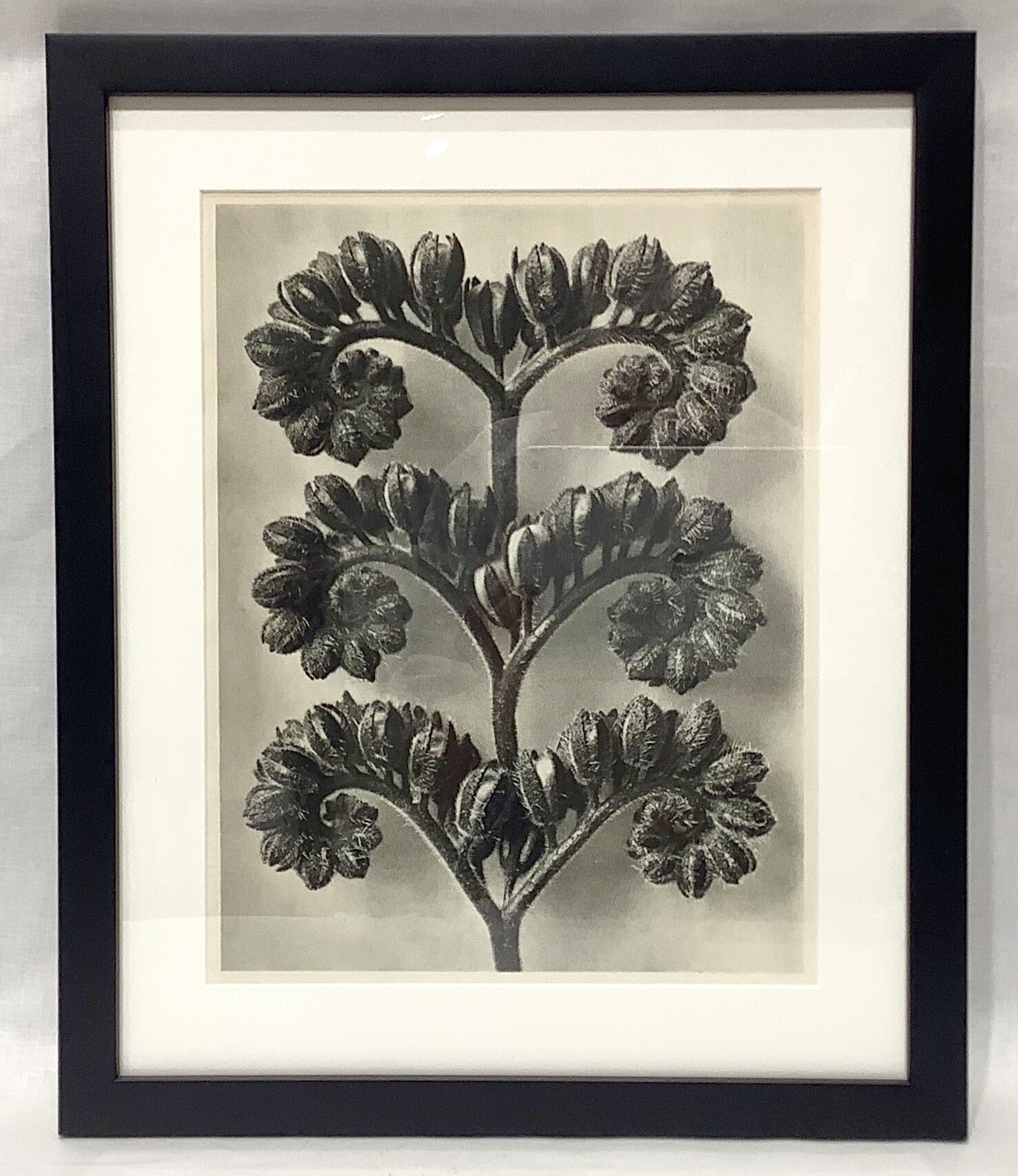 Photogravure print of a Karl Blosfeldt photo, from his 1929 series Urformen der Kundt (Art Forms in Plants). Blosfeldt was a pioneer in macro photography, magnifying his subjects up to 30x their normal size. In doing so, he was able to display the architectural shapes of plants. Print is museum quality mount and frame.