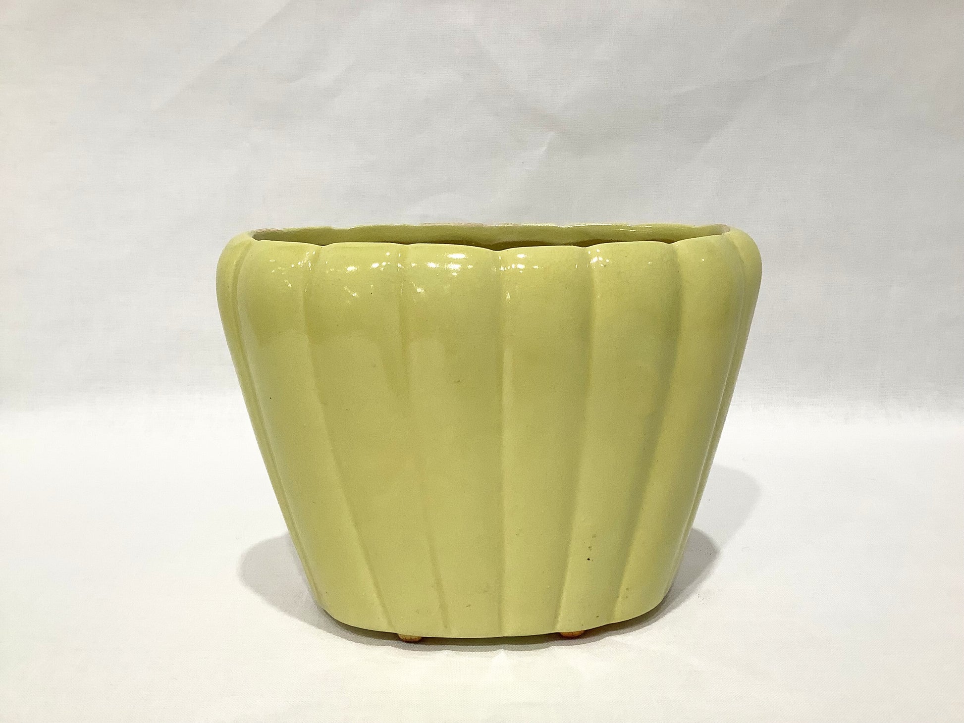 1960's mid-century modern, yellow planter in a squash design. Stylish and sleek, it would make a cheery addition to a garden or home.