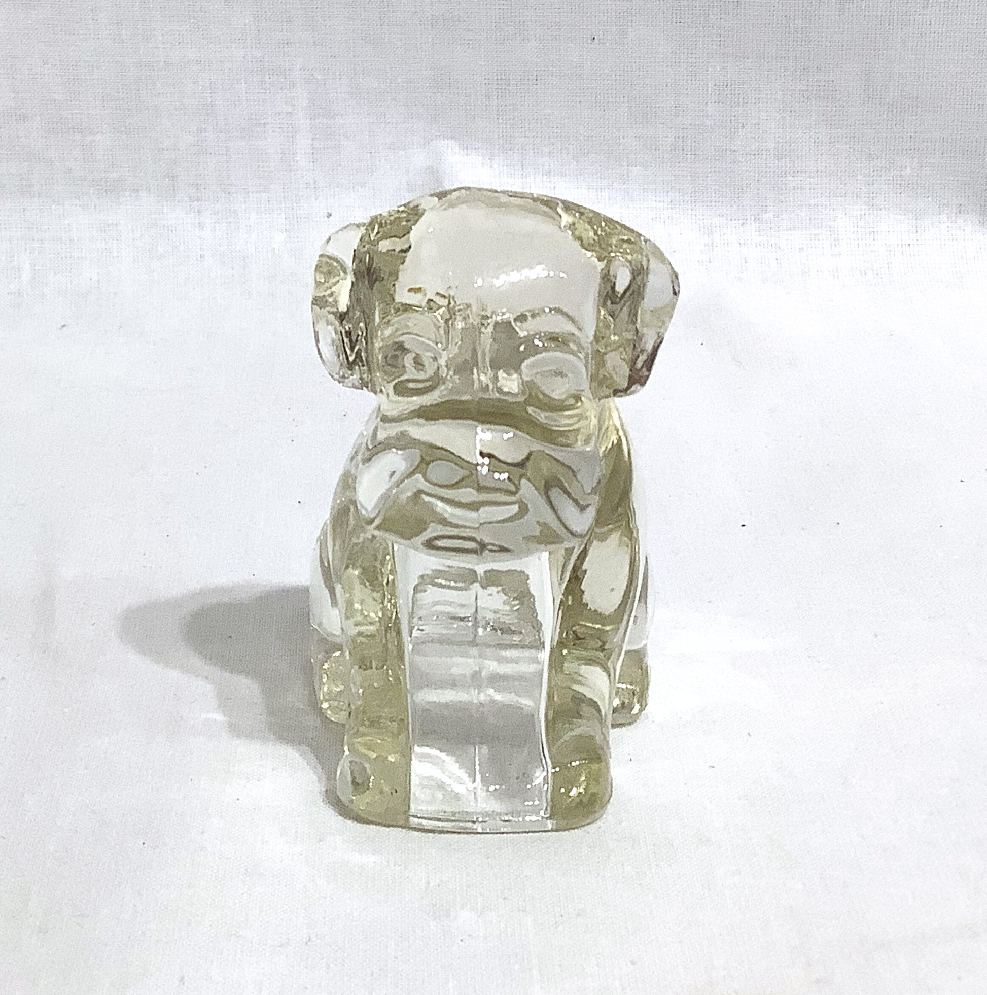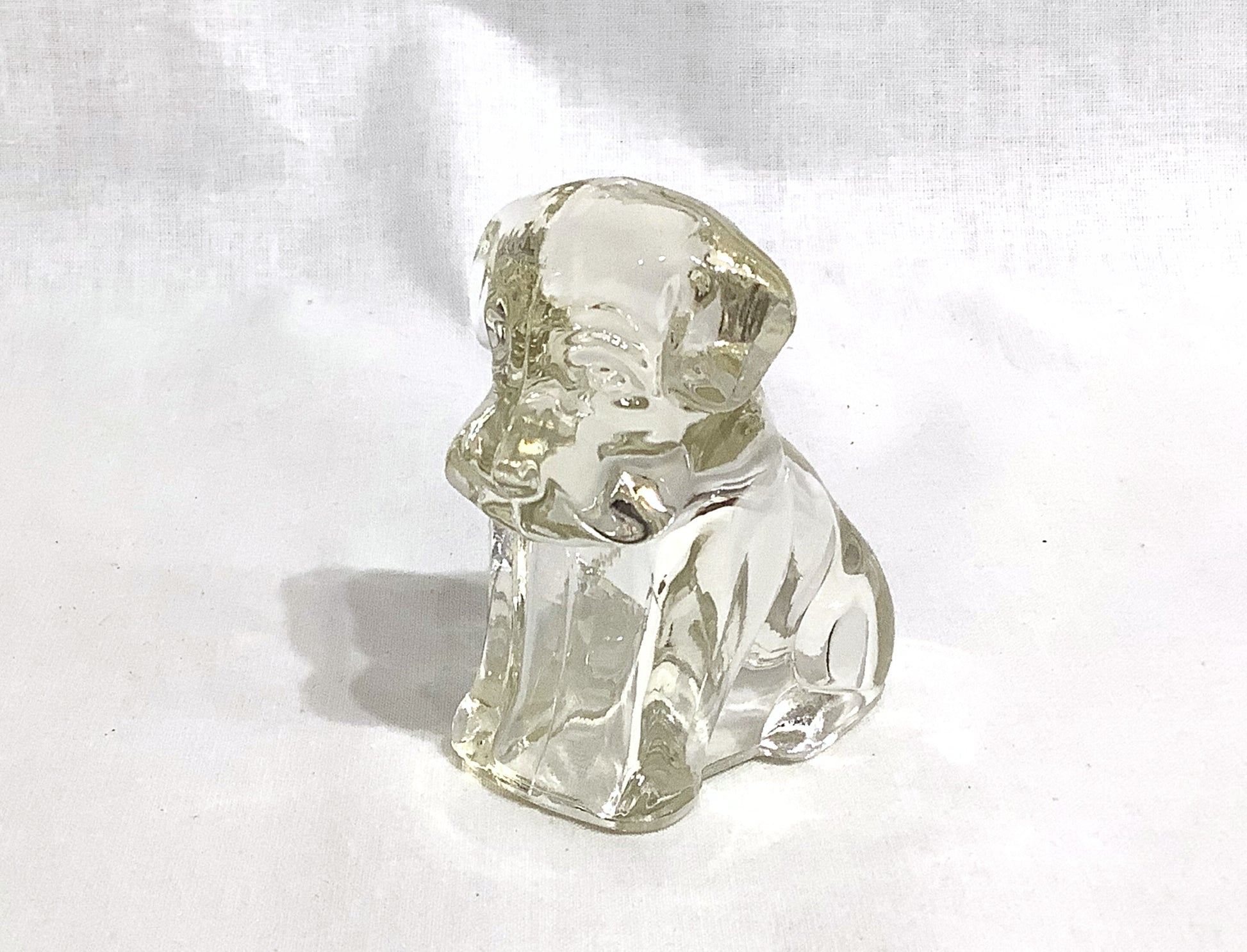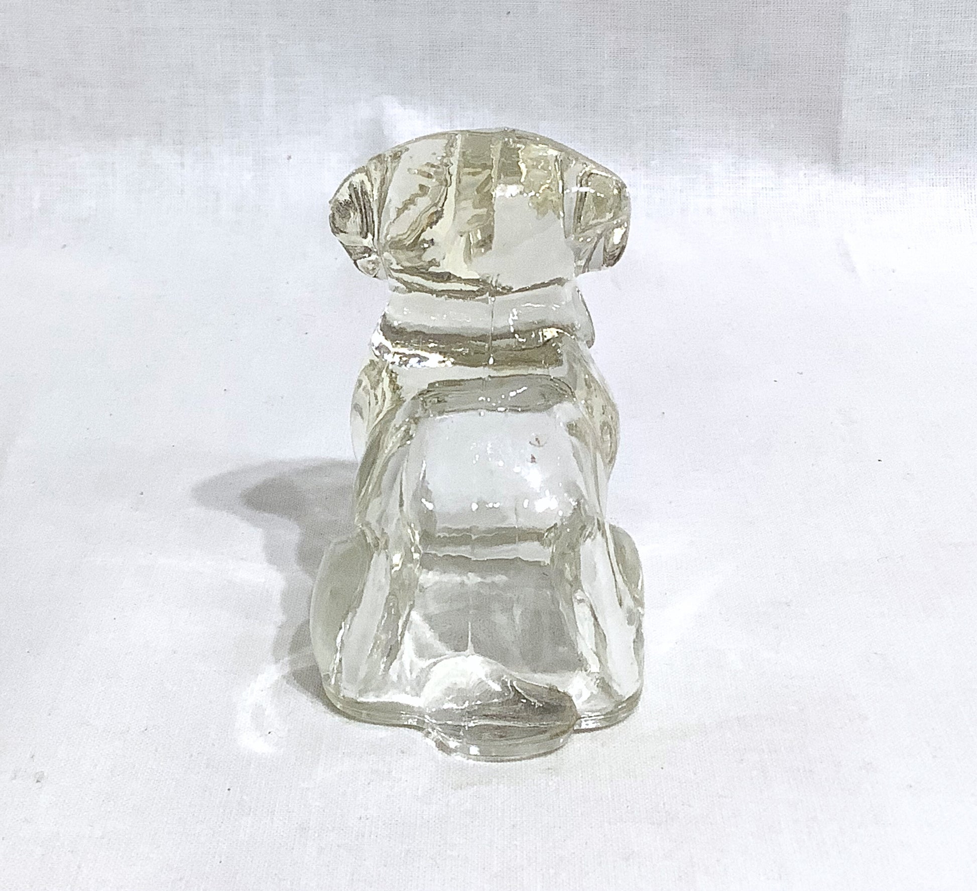 This adorable dog, produced by the Federal Glass company in the 1950's, is more than just a sweet face, as a vintage candy holder, it has a sweet past too. Sadly the candy it held is long gone, surely gobbled up by grateful children, but it continues to bring smiles as a whimsical piece of décor. Its measurements are 3" x 2" x 2.5".