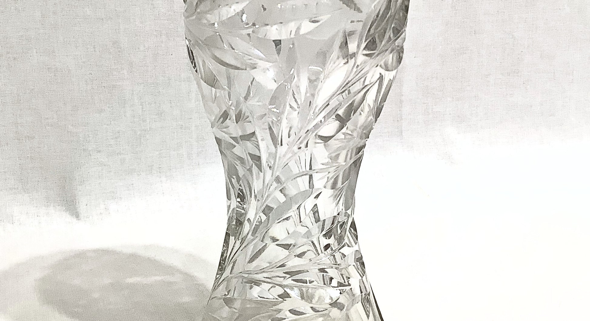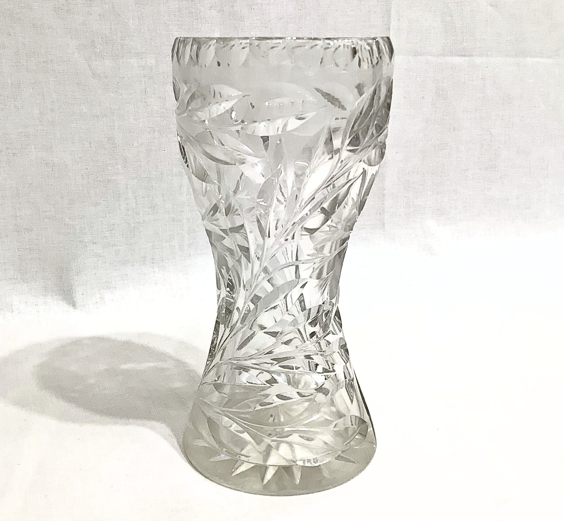 This sweet vase is Bohemian cut crystal and fashioned in a beautiful leaf pattern.