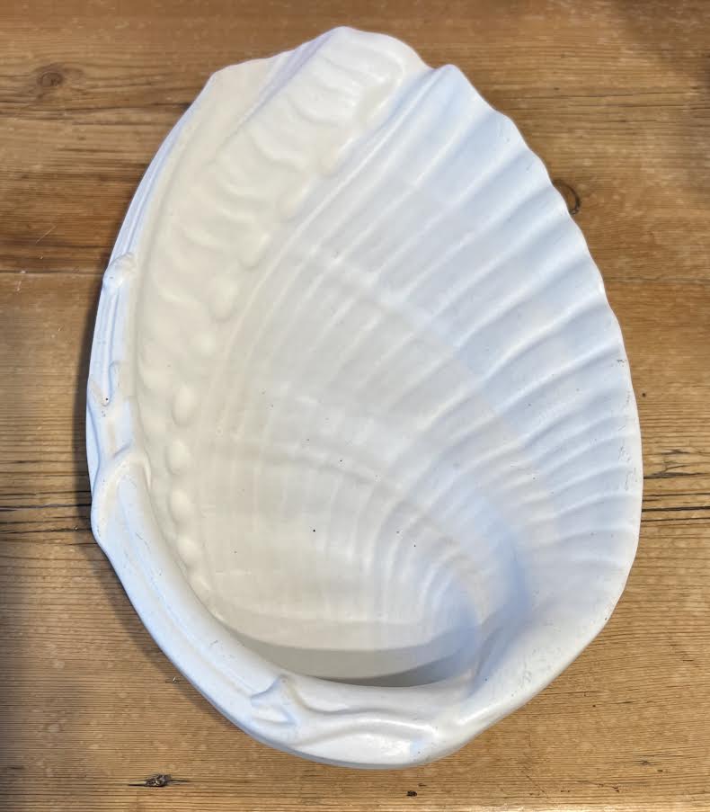 Vintage Swedish Gustavsberg Carrara Porcelain Shell Shaped Bowl/Dish ... Designed by Wilhelm Käge, 1940's ... finish made to resemble Carrara marble ... Excellent condition ... 12" long ... Purchased in Stockholm.