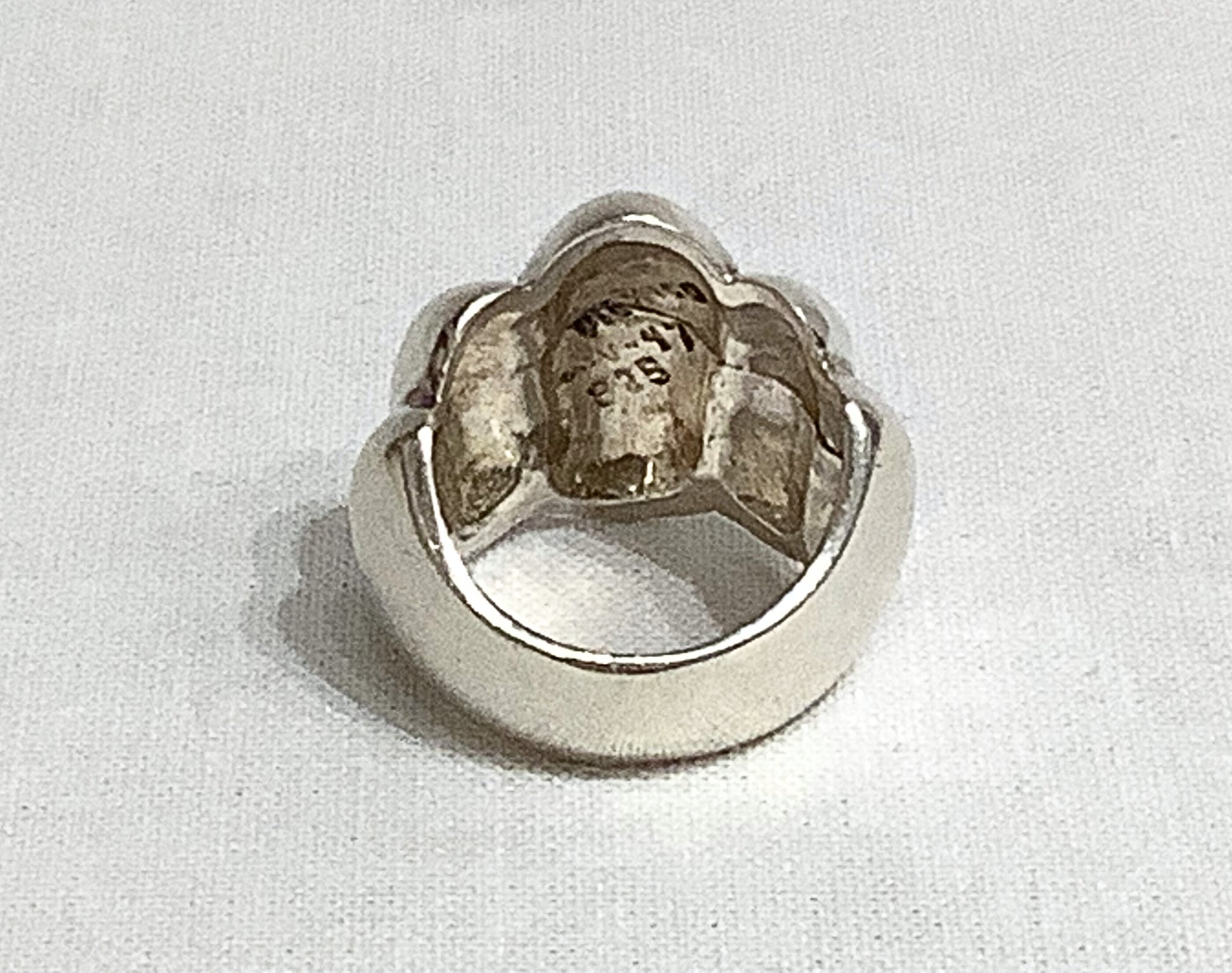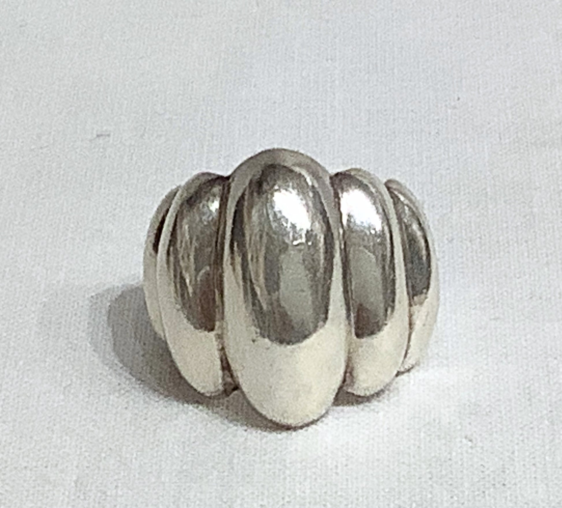 Modernist ring in sterling silver, very architectural in design. Size 7.