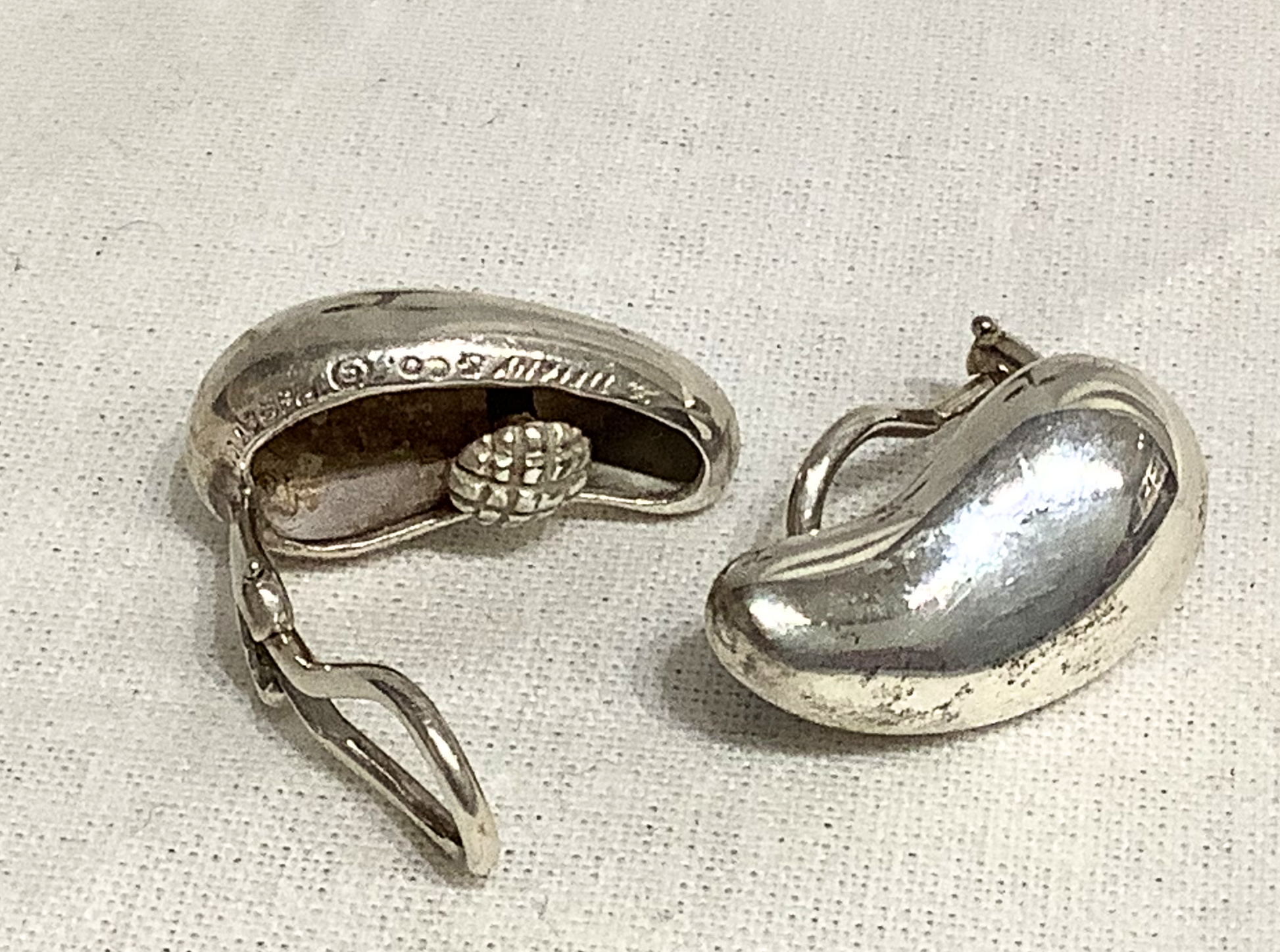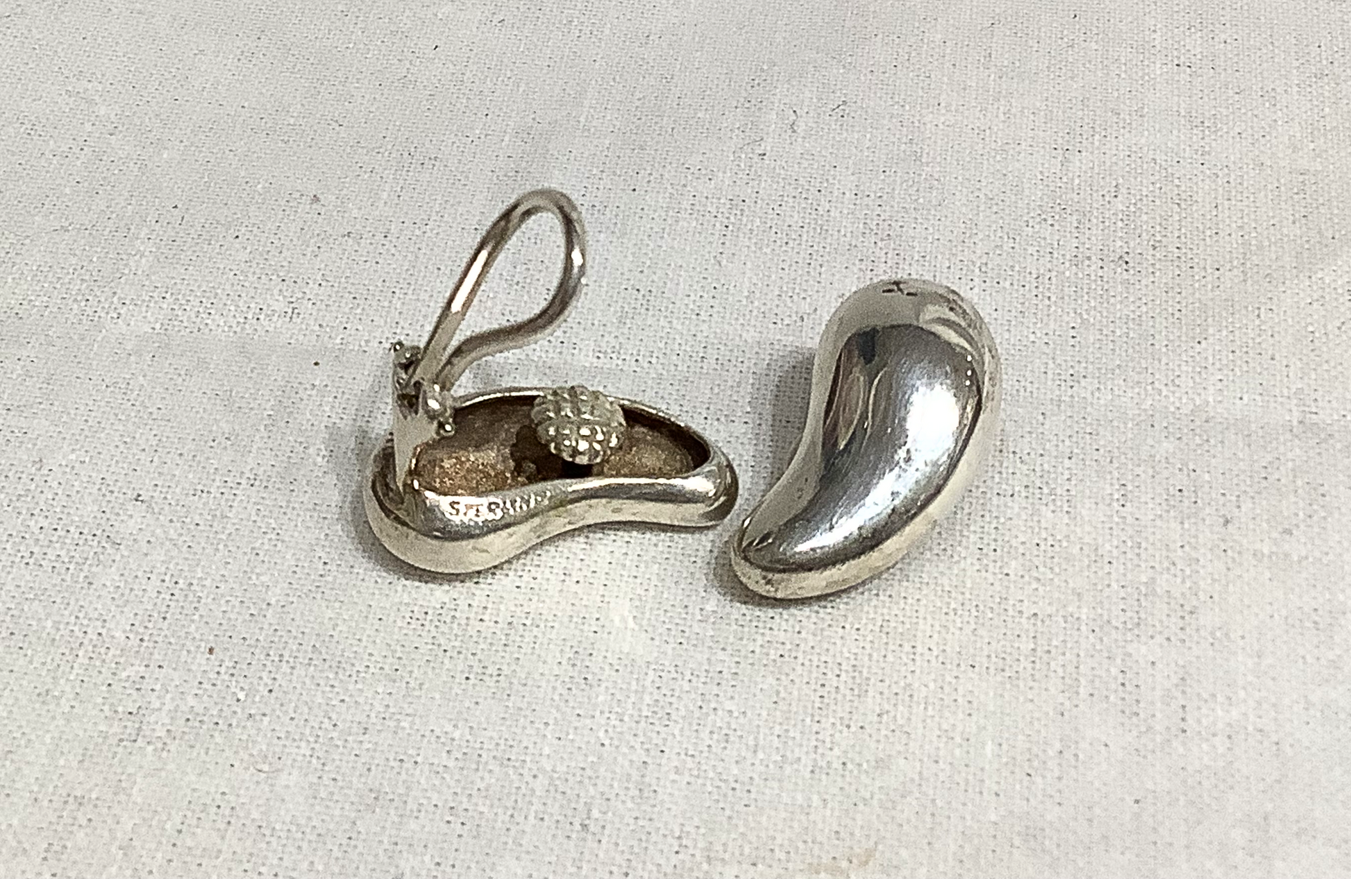 Tiffany's iconic bean design earrings. Elsa Peretti designed created her bean inspired jewelry for Tiffany's in the early 1970's. Earrings are made in sterling silver and are clip on style.
