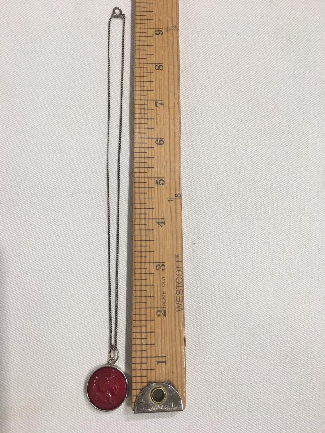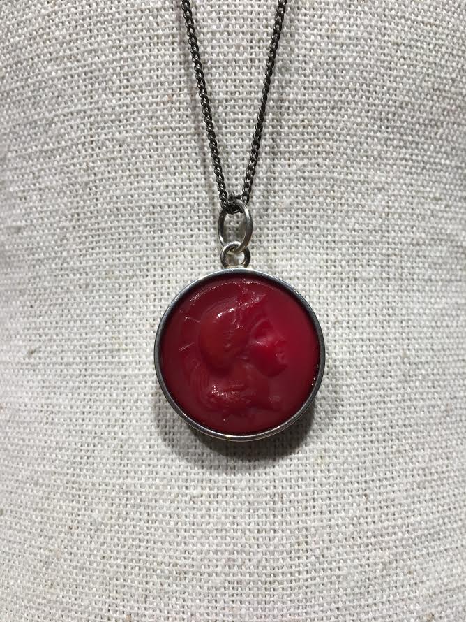 Venetian Murano Glass Cameo mounted in Sterling Silver with Sterling chain. Classical Warrior Profile. Purchased at an antique dealer in Venice. Excellent condition.