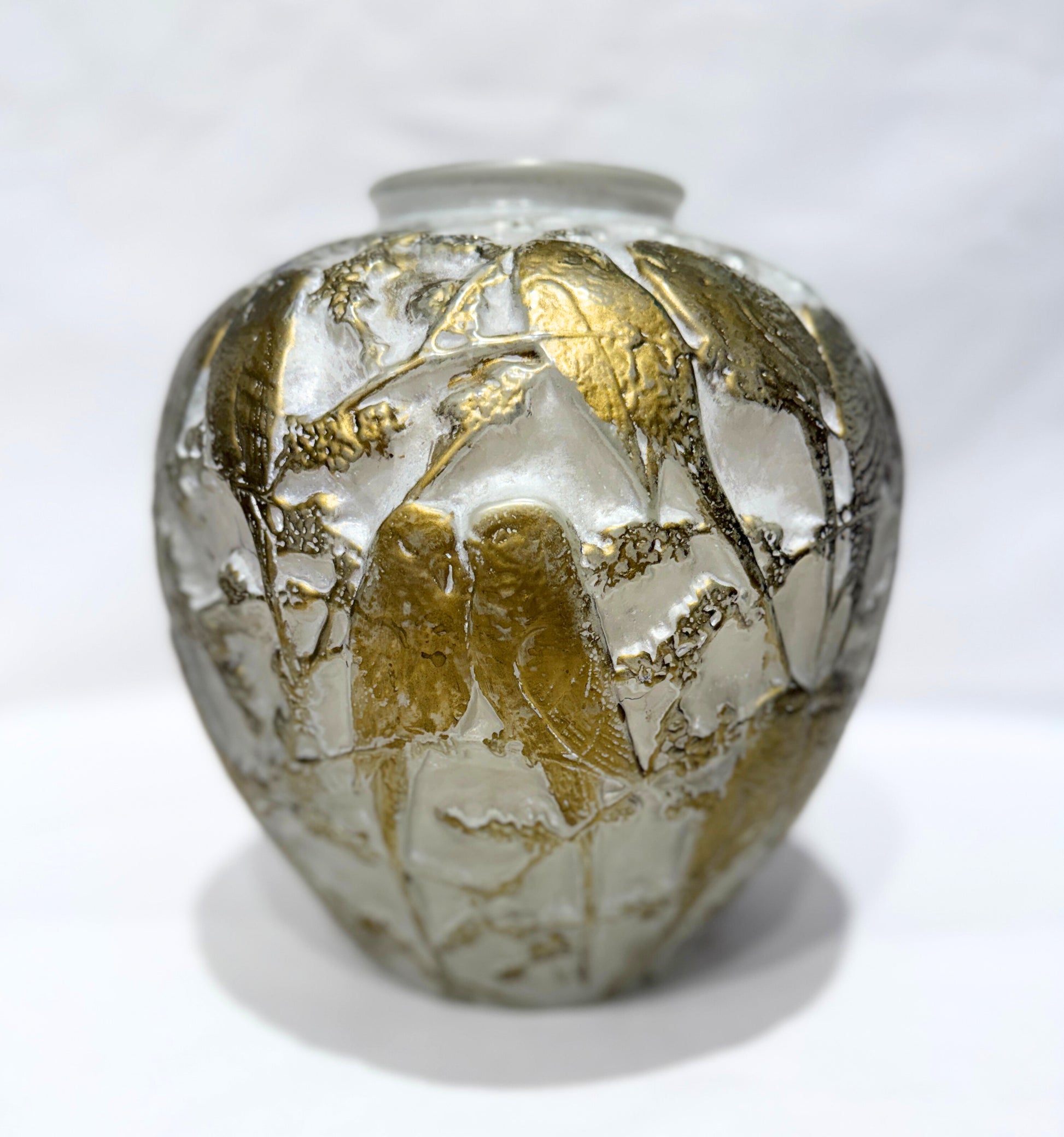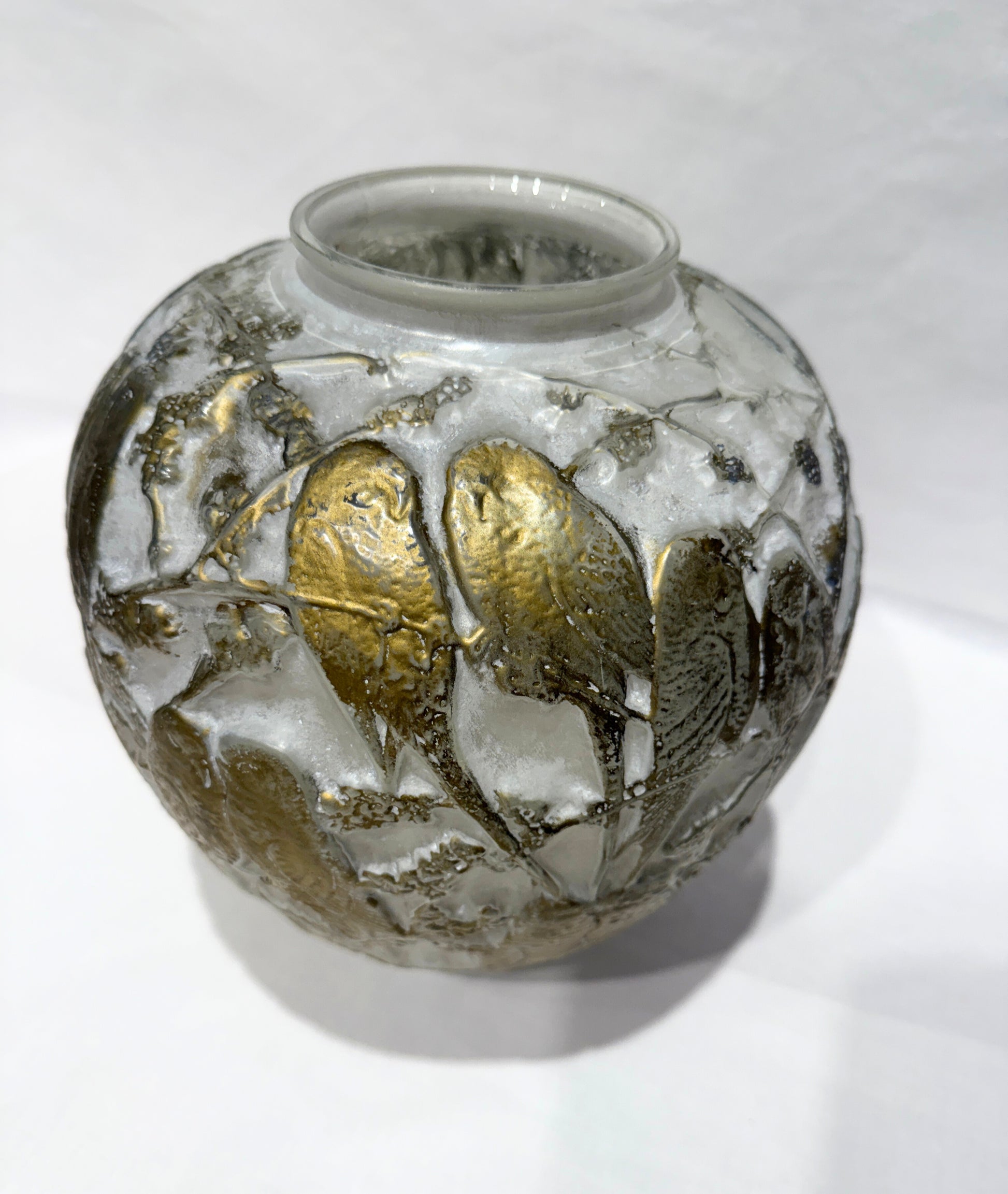 Vintage vase made by the Phoenix Glass Company, from Pennsylvania. Vase is in the rare lovebird pattern, from the early 20th century. 10" x 5 1/2".